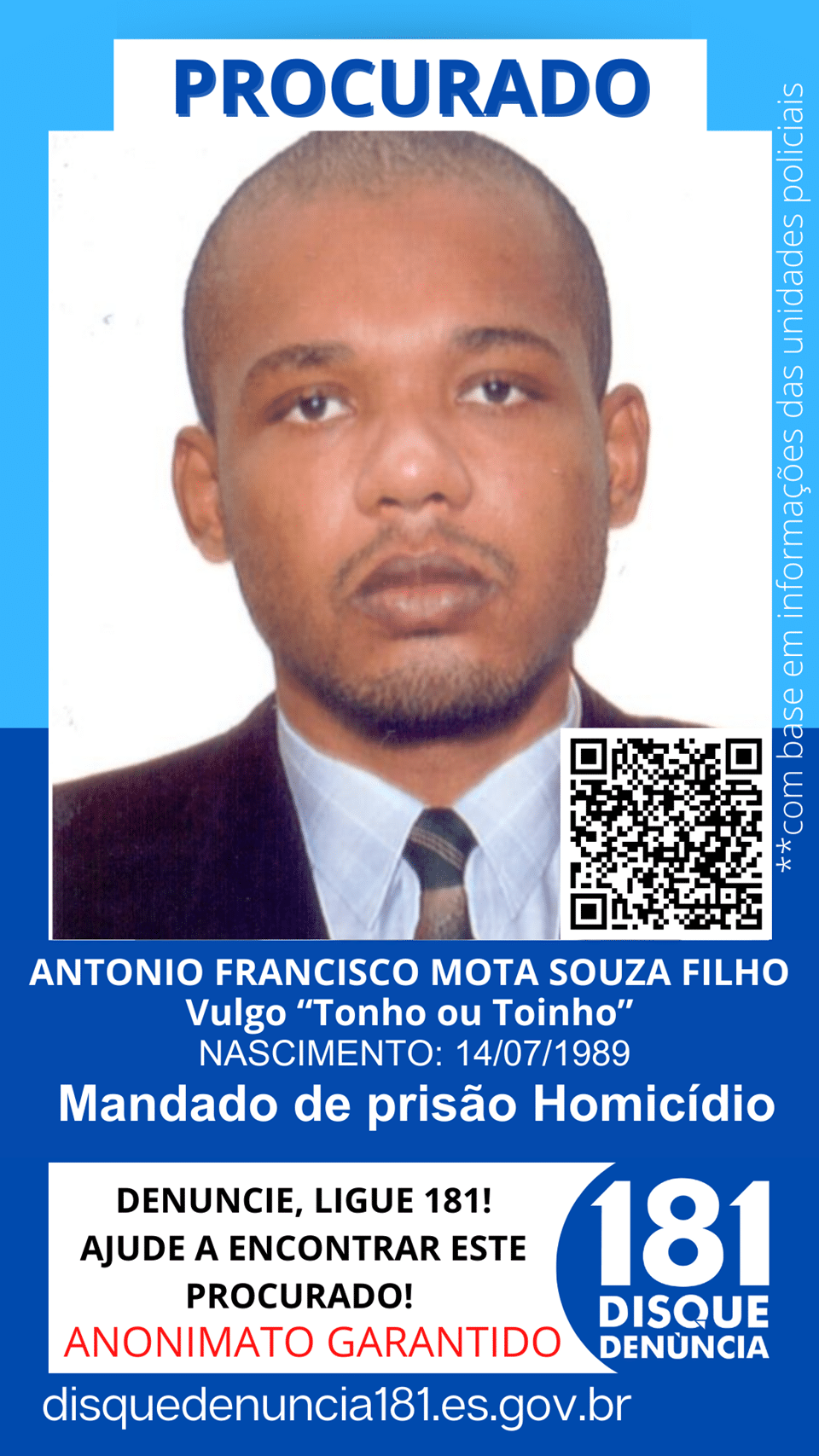 “Quem tiver qualquer informação sobre o paradeiro de Antonio Francisco Mota Souza Filho, ligar para o 181 e denunciar, assim a comunidade ajuda a Polícia Civil a prender criminosos”, reforça a PC.