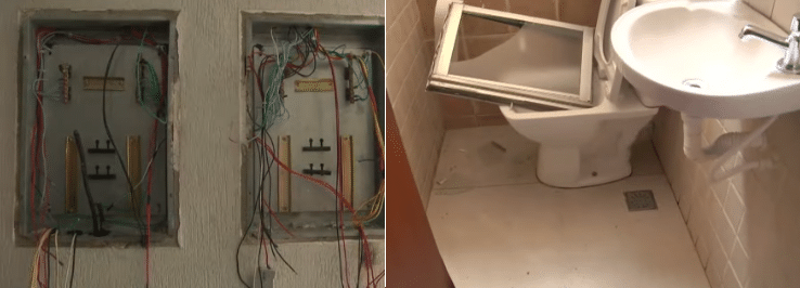 Os invasores quebraram o portão principal e, em seguida, foram até o quadro de distribuição de energia, de onde levaram cabos de cobre e destruíram o disjuntor. Toda a fiação acessível foi levada. Para acessar o salão, os criminosos estouraram uma porta de vidro e reviraram diversos setores do restaurante.