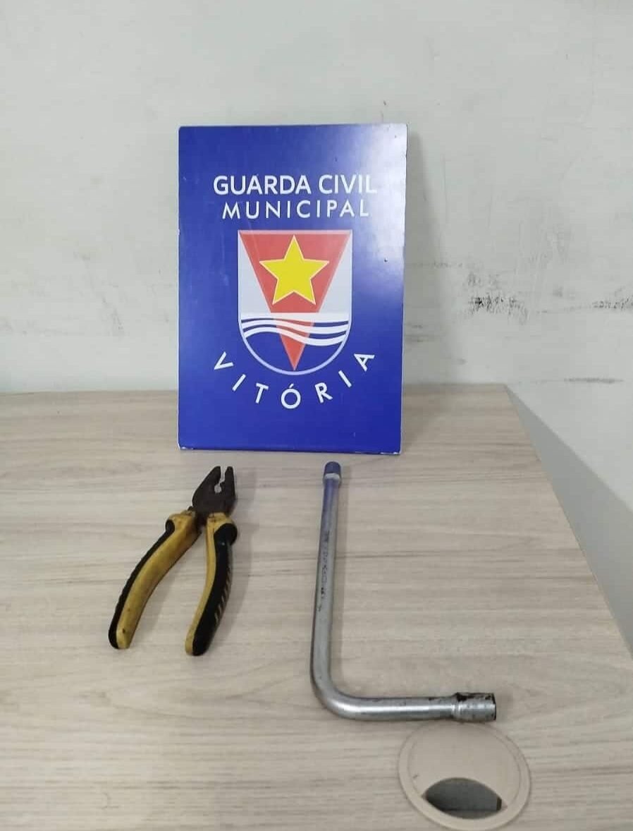 O homem foi encaminhado para a Delegacia Regional de Vitória, junto com o material apreendido. Segundo a Guarda Municipal, ele já possui antecedentes por furto a estabelecimento comercial e receptação.