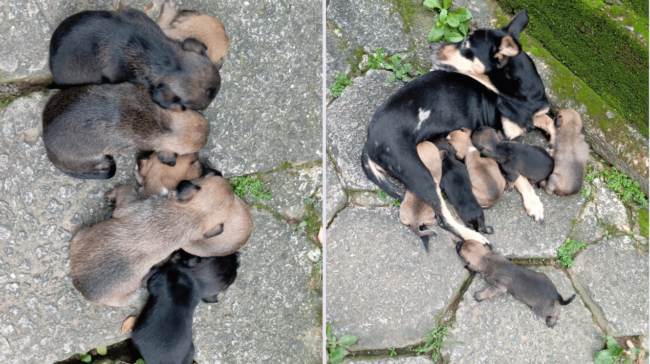 Uma mulher, moradora de Cariacica, que passava pelo local viu os animais e os acolheu até a casa dela. Sobre o caso, a Prefeitura de Vitória informou que abandonar animais é crime e os moradores devem registrar Boletim Unificado online ou na delegacia mais próxima.