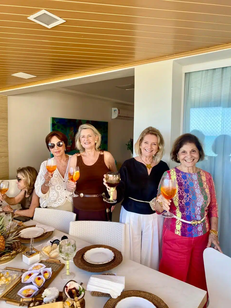 Com a elegância e o carinho que lhe são característicos, Gracinha Nader abriu seu belo apartamento na Praia das Virtudes nesta quarta-feira, dia 7, para receber um grupo de amigas em um almoço especial. A tarde foi marcada por alegria, descontração e muitas conversas animadas, em clima de verão. Entre as presenças, destacaram-se Hélvia Abaurre, Soeli Gama, Carlota Gottardi, Dalva Carone, Alzira Torres, Solange Herkenhoff, Míriam Fafá, Orlandina Almeida, Sônia Abelha, Valéria Nemer, Lusa Vieira e Stephanie Nader, filha da anfitriã. O encontro ganhou ainda mais charme com o toque tropical na decoração, assinado por Soeli Gama, que trouxe cores e frescor típicos da estação. Essas reuniões já se tornaram tradição durante a temporada de verão em Guarapari, reforçando laços de amizade e celebrando bons momentos à beira-mar.