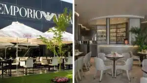 O St. Laurent Café, em Paris, na França, e em Los Angeles (EUA) abriga galeria de arte junto à cafeteria. Ali se encontram doces, tortas e cafés, além de peças exclusivas da marca e parte do acervo pessoal de Yves St. Laurent. Pode-se citar ainda o Armani Caffé em Dubai, da marca Giorgio Armani, e o Blue Box Café (Tiffany & Co.) em Nova Iorque.
