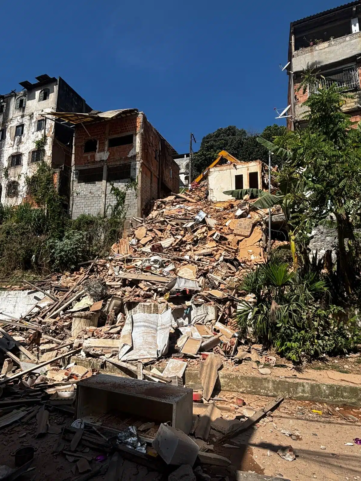 Cinco imóveis estão sendo demolidos nesta quarta-feira (29) em Vila Velha após o desabamento de um prédio no bairro Cobi de Baixo, na madrugada. O colapso da estrutura mobilizou equipes do Corpo de Bombeiros, Defesa Civil e de diversas secretarias municipais, que identificaram risco iminente de novos desabamentos nas construções vizinhas.