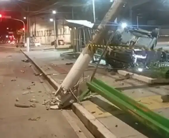 Motorista embriagado é preso após derrubar ponto de ônibus