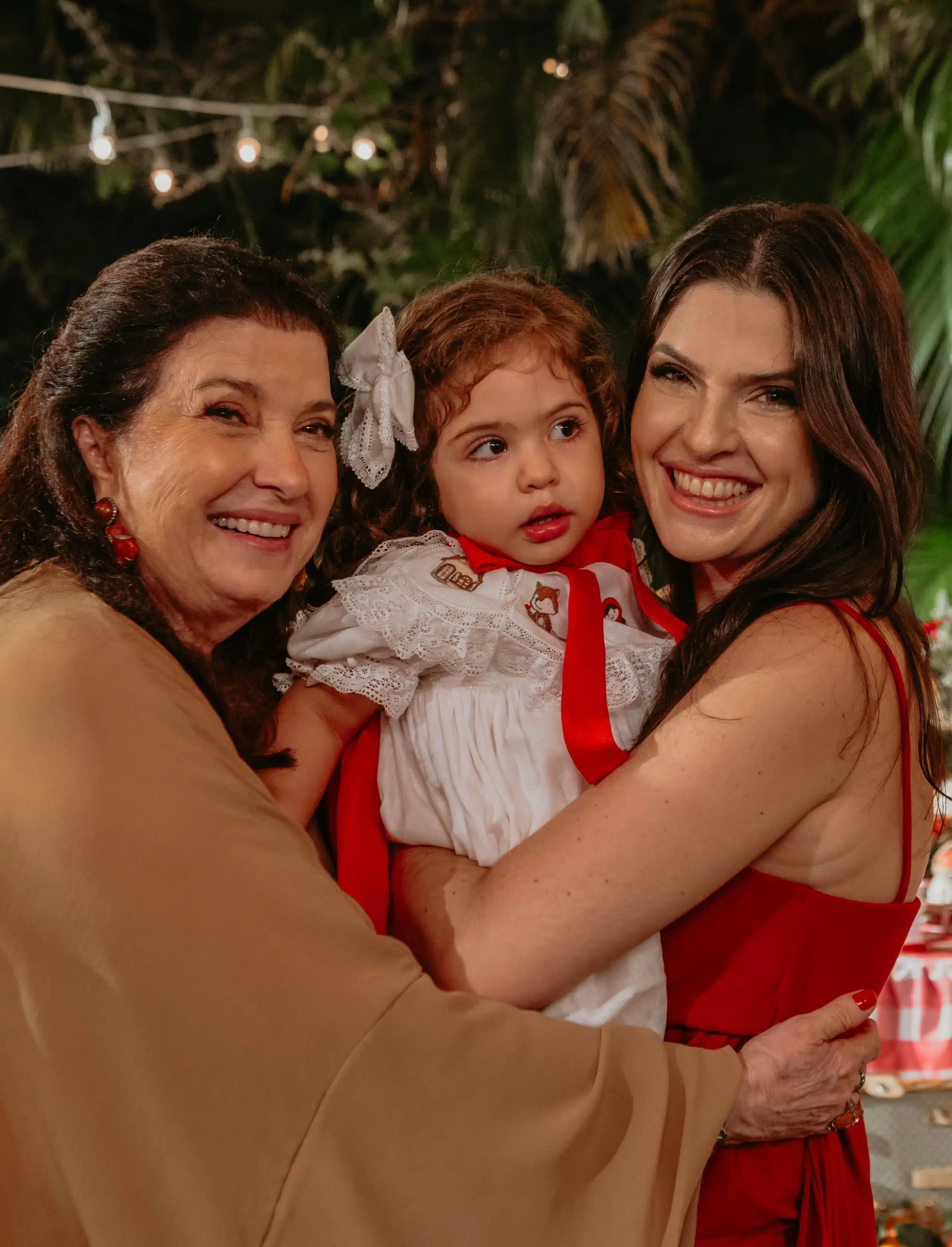 Carla Buaiz abriu as portas do jardim do Cerimonial Oásis para celebrar os dois anos de sua filha, Maria Vitória, com uma festa encantadora inspirada no universo da Chapeuzinho Vermelho. Em destaque: a avó materna, Vânia Campos, a aniversariante Maria Vitória e sua mãe, Carla Buaiz, em um retrato cheio de ternura.