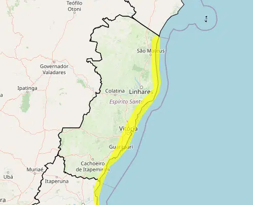 O Instituto Nacional de Meteorologia (Inmet) emitiu um alerta para toda a região litorânea do Espírito Santo, indicando risco de intensificação dos ventos costeiros. O aviso, classificado como “perigo potencial”, permanece em vigor até esta sexta-feira (4), com a possibilidade de novas rajadas de vento ao longo do fim da tarde e início da noite.