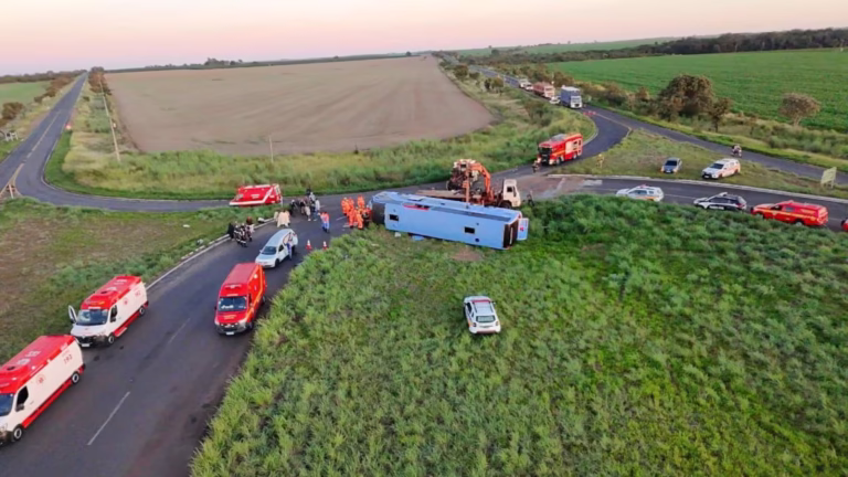 “A Prefeitura de Araguari, por meio da Secretaria Municipal de Saúde, acompanha as consequências do grave acidente ocorrido na madrugada desta terça-feira (8), por volta das 3h40, na MG-223, entre Araguari e Tupaciguara, envolvendo um ônibus com cerca de 50 passageiros. Até o momento, há registro de quatro mortes e ao menos 18 feridos.