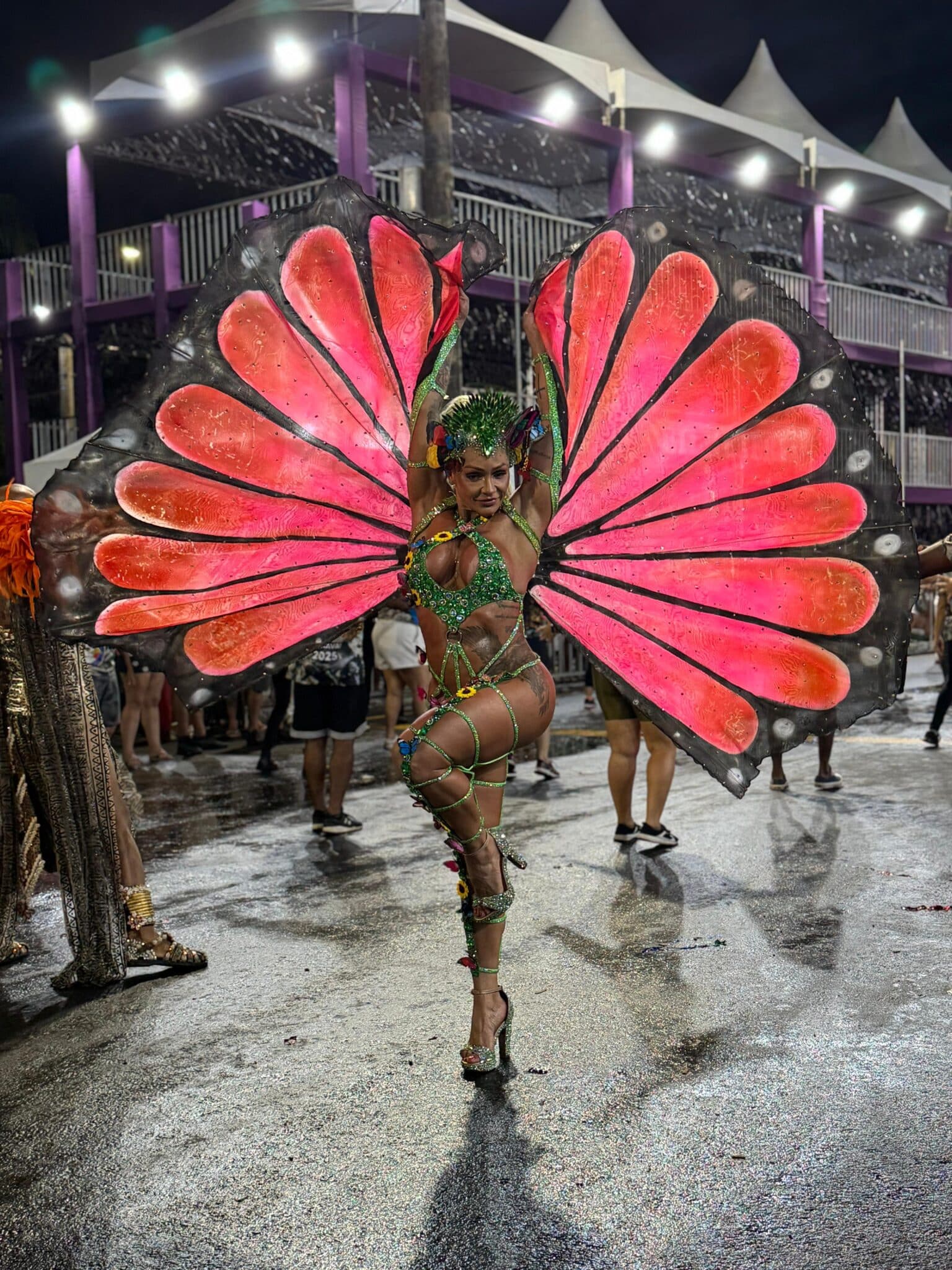 A empresária Aline Bianca no ensaio técnico da Boa Vista no Sambão do Povo. Foto: Lucas Lascosck