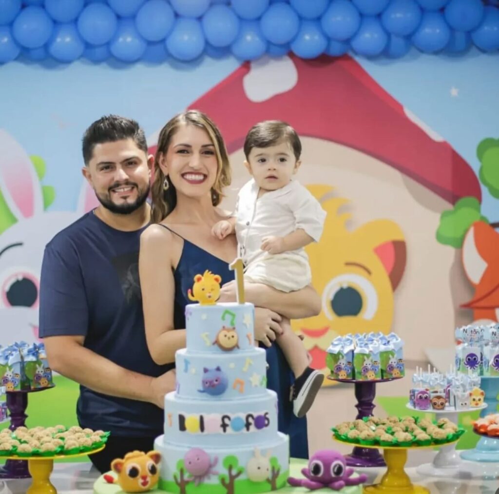 O filho do casal de fisioterapeutas Daiane Klein Faneli e Paulo André Faneli, Natan, ganhou uma festinha linda para comemorar 1 aninho na Praia da Costa. O tema foi Bolofofos, a turminha de cinco bichinhos animados que se parecem com bolinhas peludas. Na foto de Viviane Hoffmann, a família: Daiane, Paulo André e Natan Faneli.