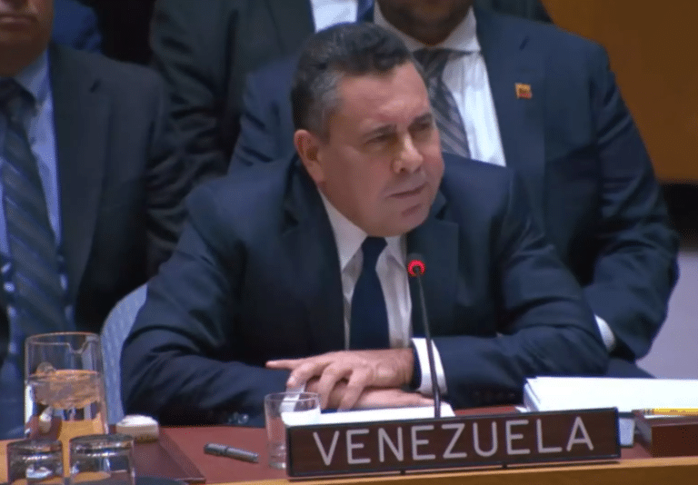 “A Venezuela é vítima dessa agressão por causa de seus recursos naturais. O petróleo, a energia, os recursos estratégicos e a posição geopolítica do nosso país historicamente despertaram ganância e pressão externa”, declarou o embaixador.