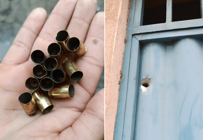 Vídeos gravados por moradores mostram o barulho dos tiros e marcas de disparos em paredes e portões de casas. Em uma foto, um morador exibe a quantidade de cápsulas deflagradas encontradas em uma rua do bairro.